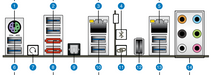 1 x PS/2-tastatur / -mus 2 x LAN (Gigabit Ethernet) 8 x USB 3.0 1 x USB 2.0 1 x TOSLINK 1 x lydutlinje - mini-jack 1 x lydinnlinje - mini-jack 1 x mikrofon - mini-jack 1 x lydutlinje (side-surround) - mini-jack 1 x lydutlinje (bakre) - mini-jack 1 x lydutlinje (senter/subbasshøyttaler) - mini-jack |