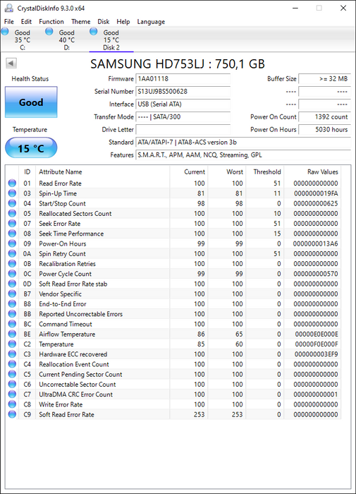 HD753LJ Samsung Spinpoint F1 750GB 7200RPM SATA 3Gbps 32MB Cache 3.5" HDD