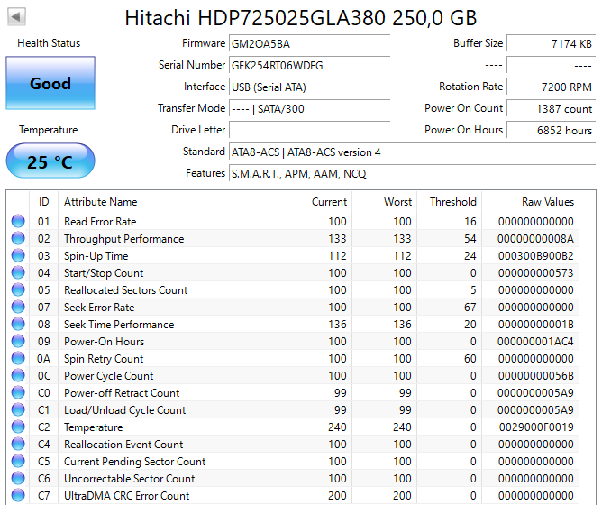 HDP725025GLA380 Hitachi Deskstar P7K500 250GB 7200RPM SATA 3Gbps 8MB Cache 3.5"