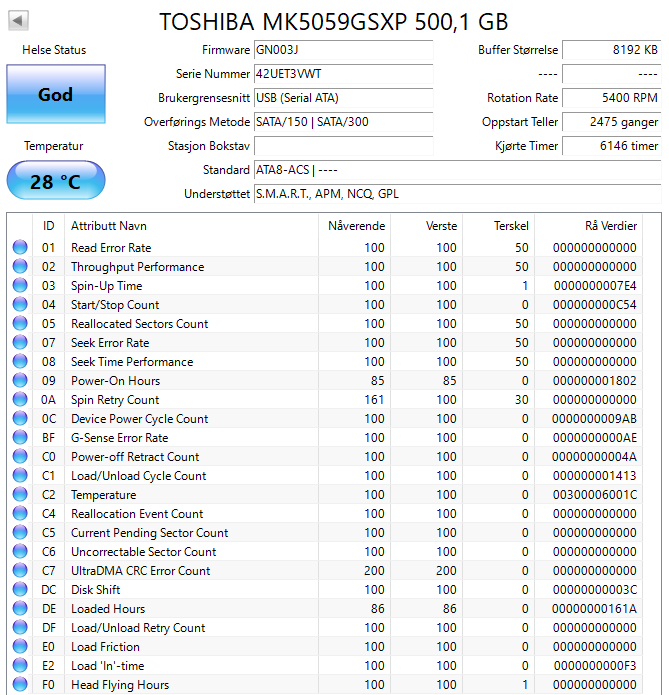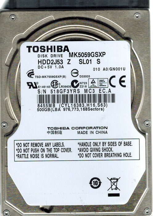 MK5059GSXP Toshiba 500GB 5400RPM SATA 3Gbps 8MB Cache 2.5" HDD