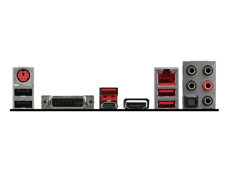 1 x HDMI 1 x LAN (Gigabit Ethernet) 1 x TOSLINK 2 x USB 3.1 Gen 1 2 x USB 2.0 1 x PS/2-tastatur / -mus 1 x DVI-D 1 x USB 3.1 Gen 2 1 x USB-C Gen2 1 x lydutlinje - mini-jack 1 x mikrofon - mini-jack 1 x lydutlinje (senter/subbasshøyttaler) - mini-jack 1 x lydutlinje (bakre) - mini-jack 1 x lydinnlinje - mini-jack |