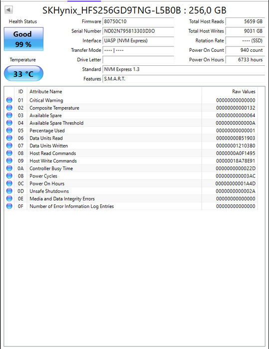 HFS256GD9TNG-L5B0B Hynix 256GB TLC PCI Express 3.0 x4 NVMe M.2 2280