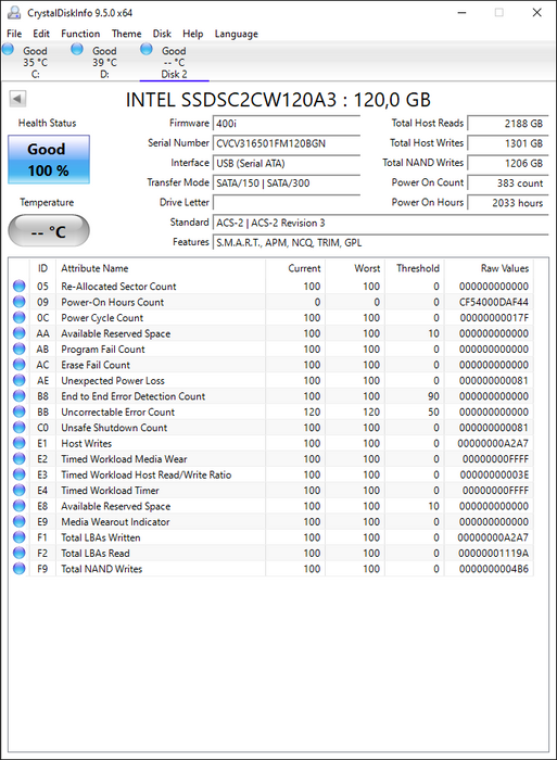 SSDSC2CW120A3 Intel 520 Series 120GB MLC SATA 6Gbps (AES-128) 2.5" SSD