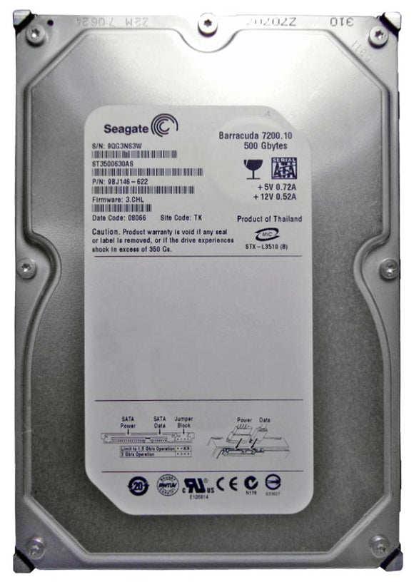 ST3500630AS Seagate Barracuda 7200.10 500GB 7200RPM SATA 3Gbps 16MB Cache 3.5" HDD