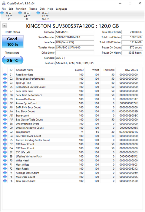 SUV300S37A/120G Kingston SSDNow UV300 120GB TLC SATA 6Gbps 2.5" SSD