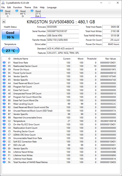 SUV500/480G Kingston SSDNow UV500 Series 480GB TLC SATA 6Gbps 2.5" SSD