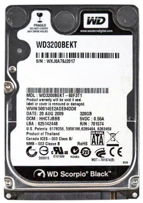 WD3200BEKT Western Digital Scorpio Black 320GB 7200RPM SATA 3Gbps 16MB Cache 2.5