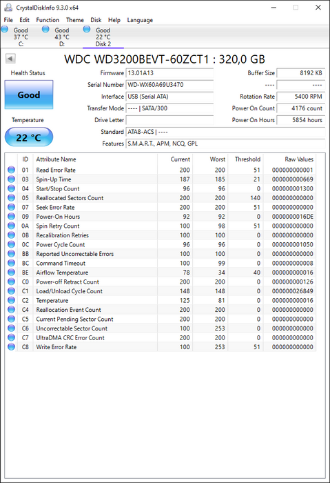 WD3200BEVT-60ZCT1 Western Digital Scorpio 320GB 5400RPM SATA 3Gbps 8MB Cache 2.5" HDD