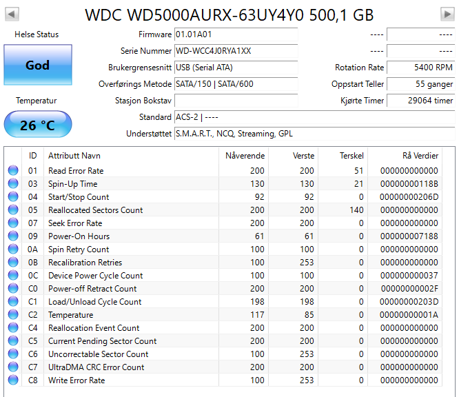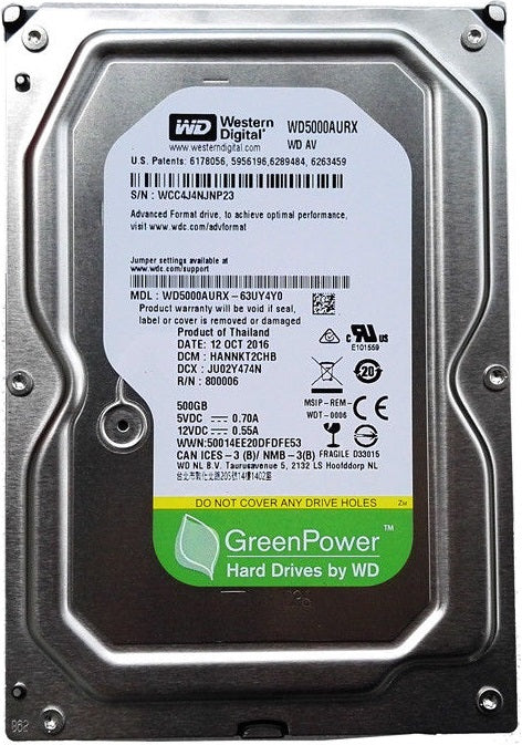 WD5000AURX Western Digital AV 500GB 5400RPM SATA 6Gbps 64MB Cache 3.5" HDD