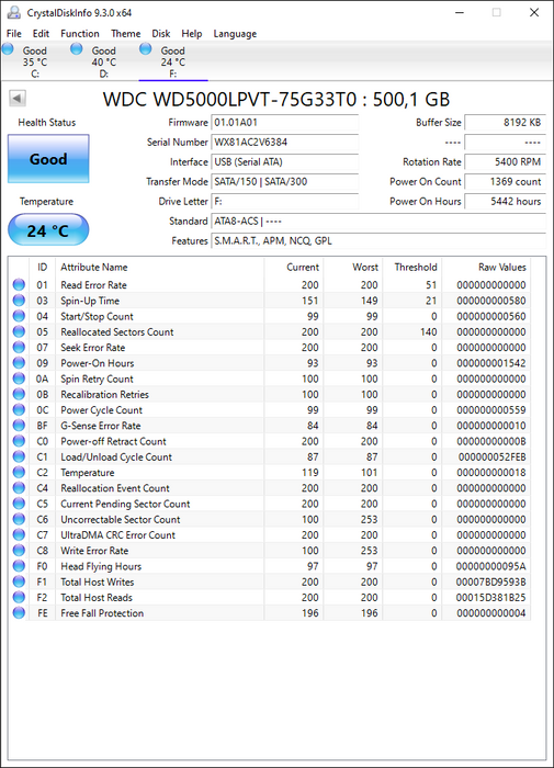 WD5000LPVT-75G33T0 Western Digital Scorpio Blue 500GB 5400RPM SATA 3Gbps 8MB Cache 2.5" HDD