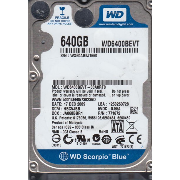 WD6400BEVT-00A0RT0 Western Digital Scorpio Blue 640GB 5400RPM SATA 3Gbps 8MB Cache 2.5"