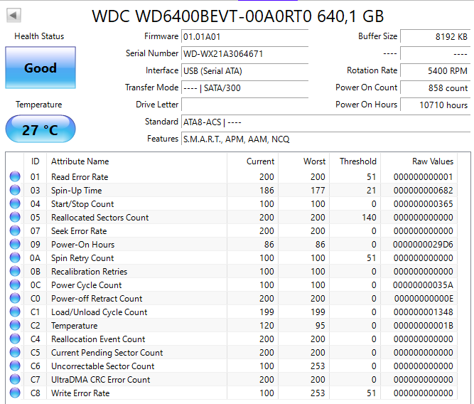| Produktnummer | WD6400BEVT-00A0RT0 |