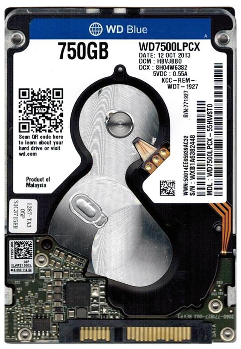 WD7500LPCX Western Digital Blue 750GB 5400RPM SATA 6Gbps 16MB Cache 2.5" HDD
